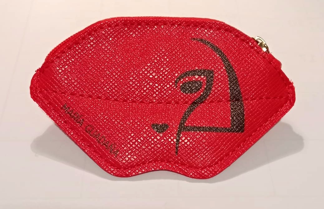 Bolsita monedero con forma de labios y el logo de María Guadaña. Puedes usarlo como monedero, para guardas las llaves, las púas, las trampas...
